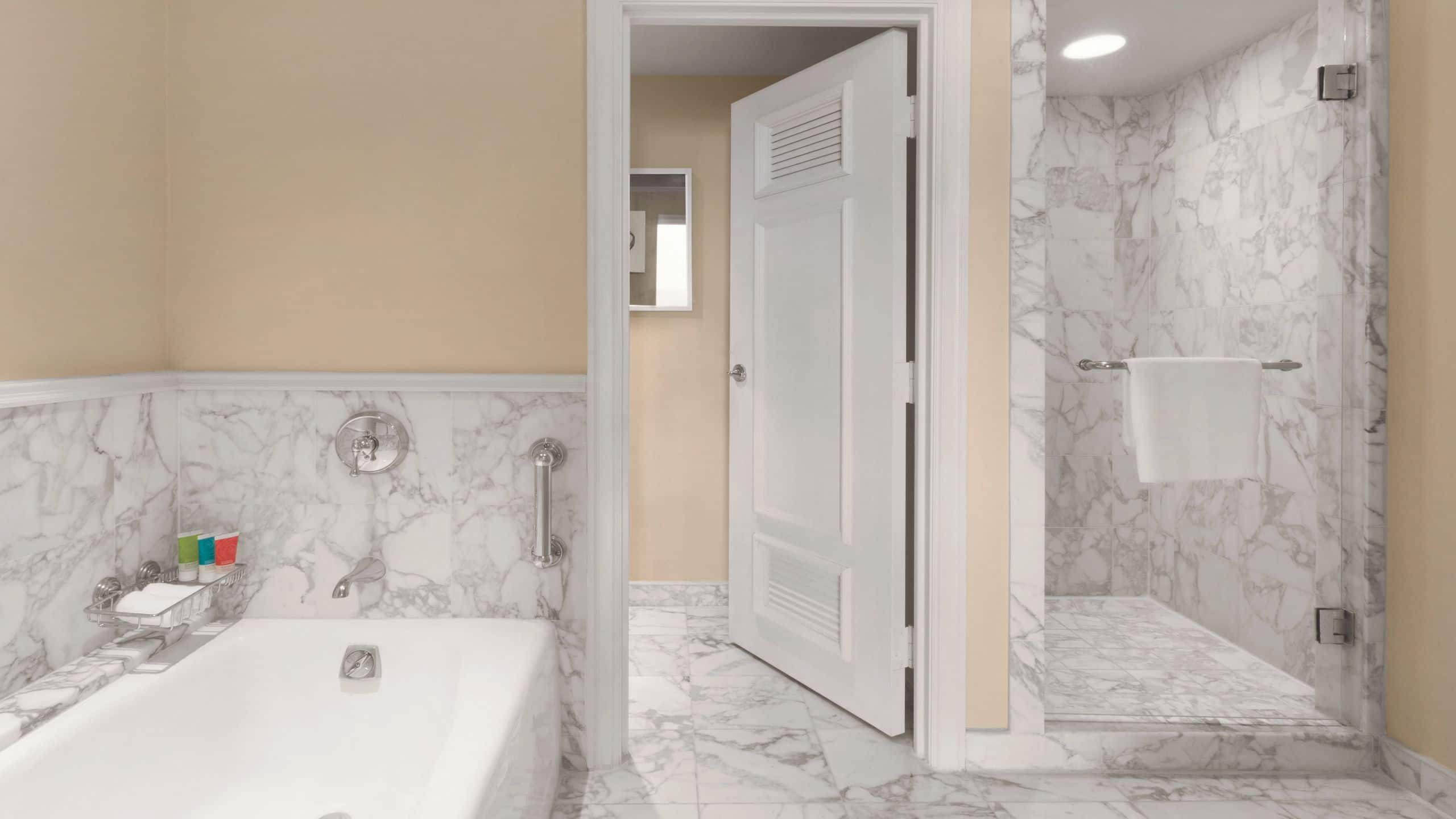 This elegant 656-square-foot suite features one king bed, a rainfall shower and separate tub, and a terrace with views of the ocean. This is a standard suite. See World of Hyatt program terms for upgrade eligibility.